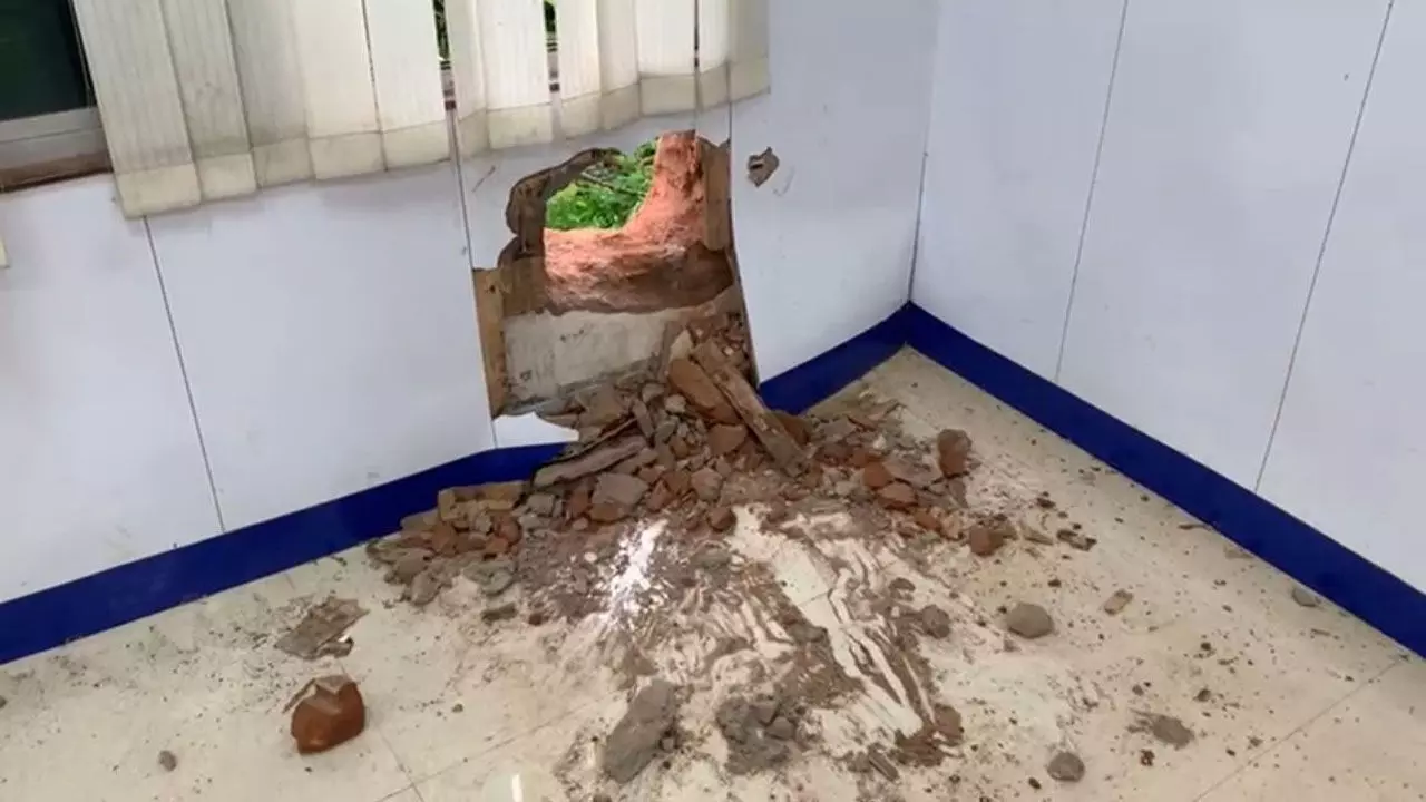 तोंगपाल स्थित स्टेट बैंक की टूटी हुई दीवार
