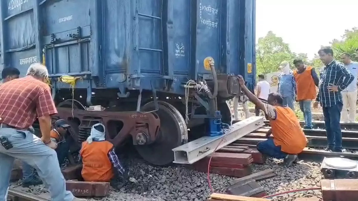 रायपुर स्टेशन पर डिरेल हुई मालगाड़ी: पटरी से उतरे दो डिब्बे, मौके पर विभाग के अधिकारी-कर्मचारी मौजूद