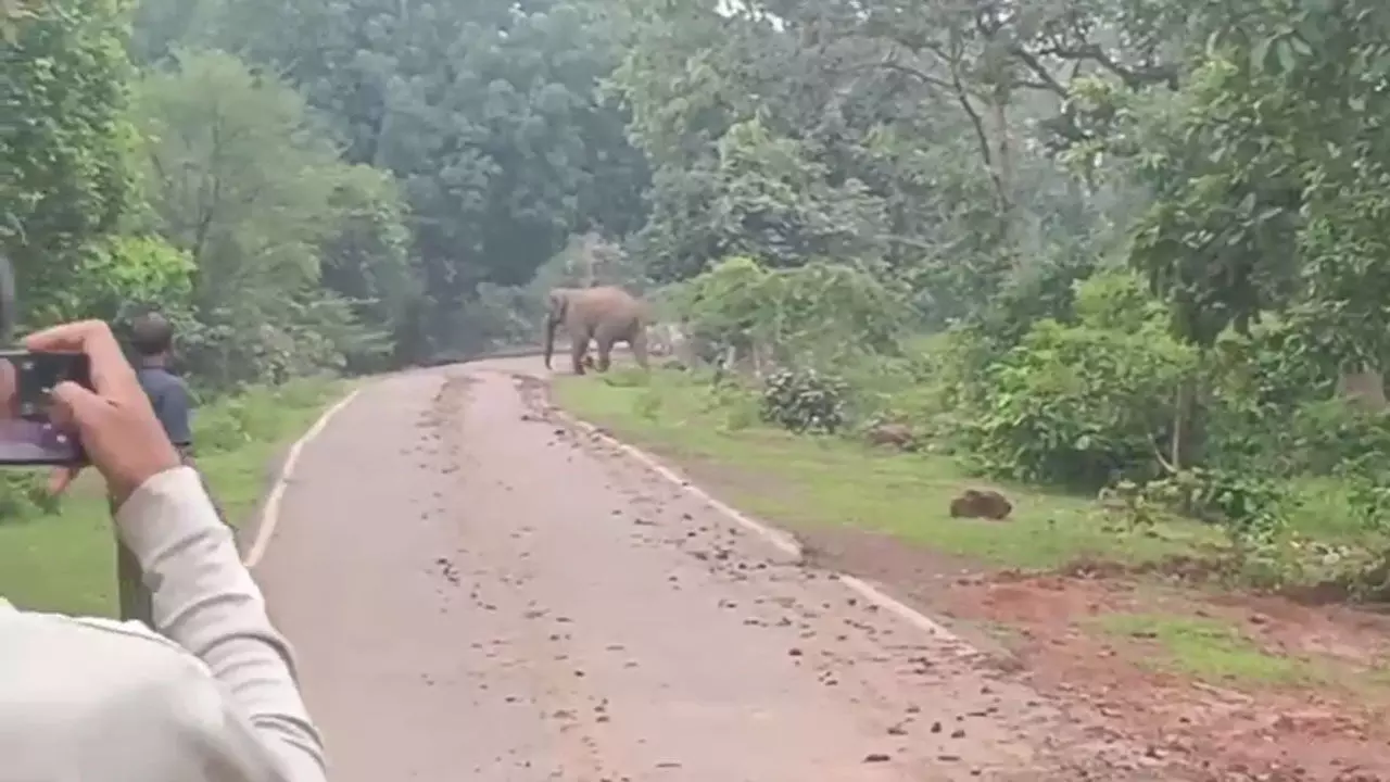 उत्तर सिंगपुर रेंज में घूमता हुआ दंतैल हाथी