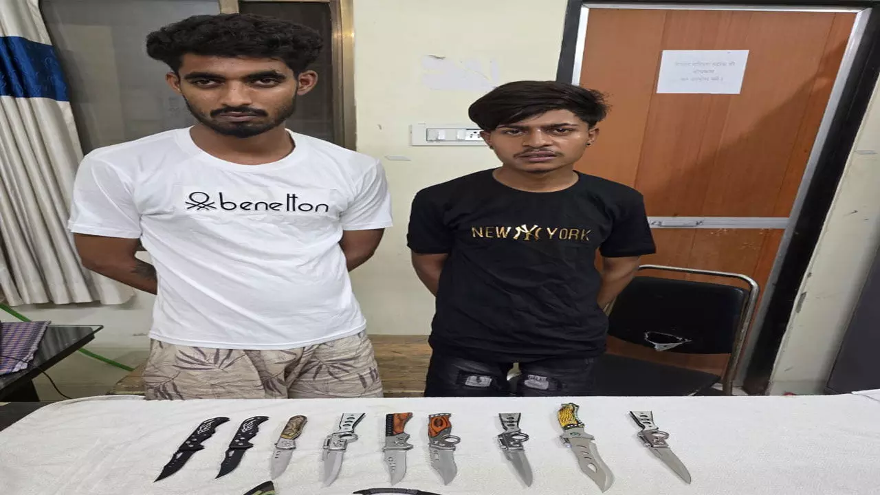 दहशत फ़ैलाने की कोशिश: पुलिस ने 10 चाकुओं के साथ दो युवकों को किया गिरफ्तार