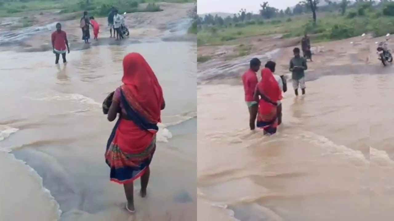 बदहाल सिस्टम की तस्वीर: नवजात बच्चे को लेकर नदी पार कर अस्पताल पहुंची महिला, देखिए वीडियो
