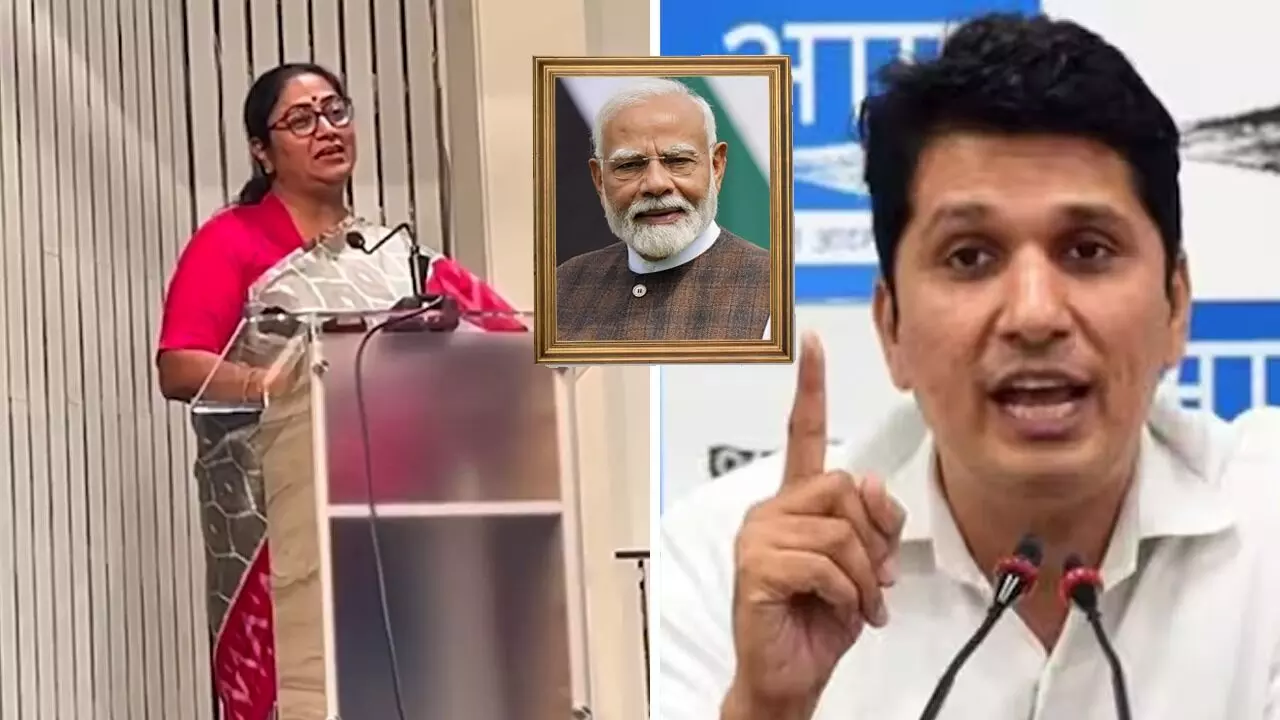 आम आदमी पार्टी के 'बेरोजगार' नेता सौरभ भारद्वाज ने सीएम के इस फरमान पर निशाना साधा है। उन्होंने सोशल मीडिया प्लेटफॉर्म एक्स पर पोस्ट शेयर करते हुए कहा कि दिल्ली की सीएम रेखा गुप्ता का फरमान आया है कि अब दुर्गा पूजा में PM मोदी की तस्वीर लगाई जाए।