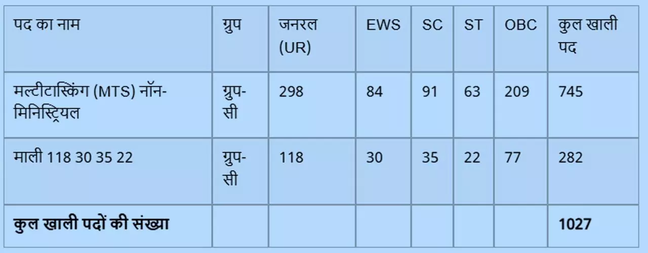 माली पद पर आवेदन करने के इच्छुक उम्मीदवारों के लिए मान्यता प्राप्त बोर्ड से 10वीं पास होना जरूरी है। वहीं एममटीएस पद पर आवेदन करने के इच्छुक उम्मीदवारों का 10वीं पास होना चाहिए। ITI वाले भी इसके लिए आवेदन कर सकते हैं।
