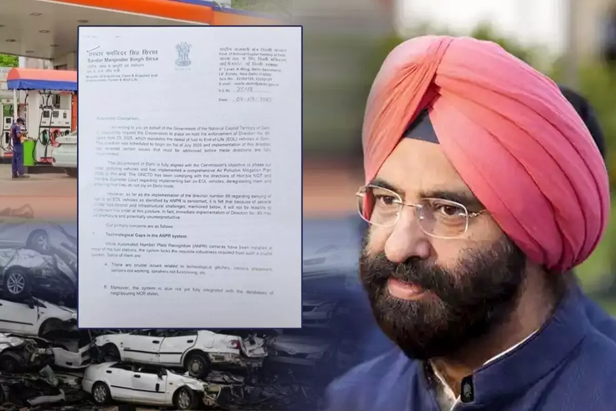 Delhi Environment Minister Manjinder Singh Sirsa writes to the Commission for Air Quality Management to place on hold the enforcement of Direction No. 89, which mandates the denial of fuel to End-of-Life (EOL) vehicles in Delhi