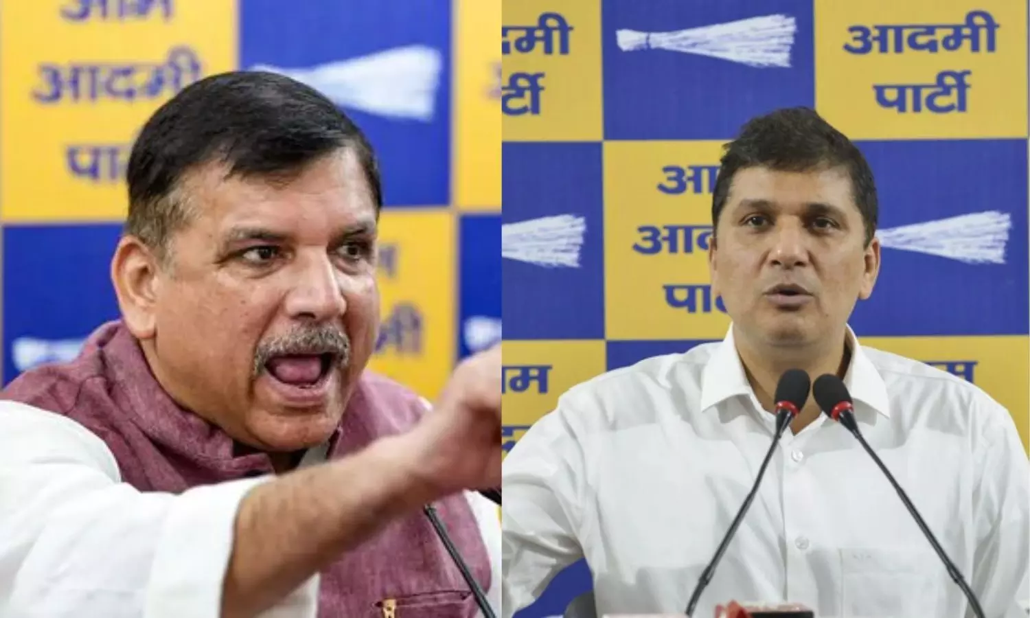 संजय सिंह और सौरभ भारद्वाज ने बीजेपी पर वोट चोरी का लगाया आरोप।
