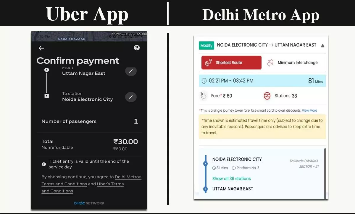 जानकारी के अनुसार, अगर आप उबर ऐप की मदद से टिकट बुक करते हैं, तो आपको मेट्रो टिकट पर अधिकतम 50 फीसदी छूट पर टिकट मिल सकता है। हालांकि, कंपनी की वेबसाइट पर दी गई जानकारी के अनुसार टिकट पर दिया जाने वाला डिस्काउंट अलग-अलग ऐप यूजर्स के लिए भिन्न हो सकता है। उदाहरण के लिए, अगर किसी व्यक्ति को दिल्ली के उत्तम नगर मेट्रो स्टेशन से नोएडा इलेक्ट्रॉनिक सिटी मेट्रो स्टेशन तक किराया 60 रुपए है। अब यदि हम मेट्रो कार्ड से पेमेंट करते हैं, तो 50 रुपए का भुगतान करना पड़ता है, वहीं DMRC की वेबसाइट या ऐप से यह 60 रुपये का ही पड़ेगा, लेकिन अगर आप उबर ऐप की मदद से मेट्रो टिकट बुक करके पेमेंट करते हैं, तो आपको यही टिकट मात्र 30 रुपए में मिल सकता है। हम इससे संबंधित यह फोटो आपसे साझा कर रहे हैं, जिसमें आप इस अंतर को देख सकते हैं।