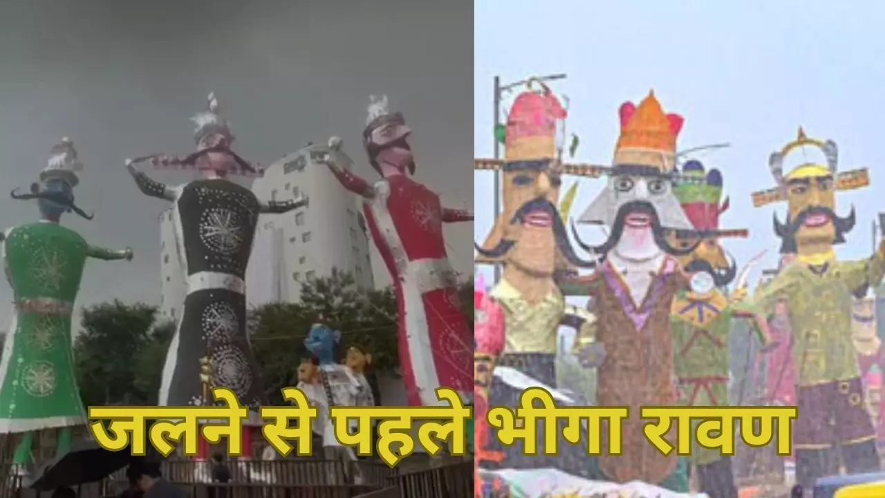 Delhi Rain: सोशल मीडिया पर एक मीम काफी छाया हुआ है। इसमें मजाक बनाया जा रहा था कि इस बार रावण जल कर नहीं बल्कि गलकर मरेगा। कहीं न कहीं उनकी ये बात साबित होती नजर आ रही है। दशहरे का दिन है और मूसलाधार बारिश हो रही है। सुबह से ही लगातार बादलों की आवाजाही लगी हुई थी। दोपहर बाद कुछ इलाकों में हल्की, तो कहीं मध्यम और कहीं तेज मूसलाधार बारिश आ गई। इससे दशहरे की तैयारियों पर काफी असर पड़ा। कई जगहों पर तेज हवा के कारण रावण गिर गए। इससे कलाकारों की मेहनत खराब हो गई। इस तरह दिल्ली-एनसीआर में बारिश ने दशहरे का मजा किरकिरा कर दिया है।