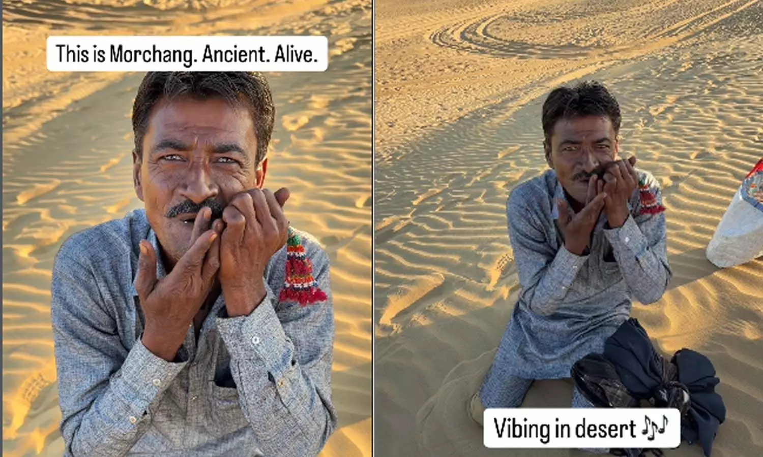 इंस्टाग्राम यूजर देवांश अलीजार ने राजस्थान के थार रेगिस्तान का वीडियो सोशल मीडिया पर अपलोड किया है। इस वीडियो में एक बुजुर्ग मोरचंग बजाते नजर आ रहे हैं। देवांश ने वीडियो के कैप्शन में लिखा, 'एक बूढा आदमी, एक खामोश रेगिस्तान। और एक छोटा सा उपकरण, जिसका नाम मोरचांग है। कोई मंच नहीं। कोई माइक नहीं। सिर्फ सदियों की लय धातु और सांस के माध्यम से कांप रही है। रुझान फीके पड़ जाते हैं।