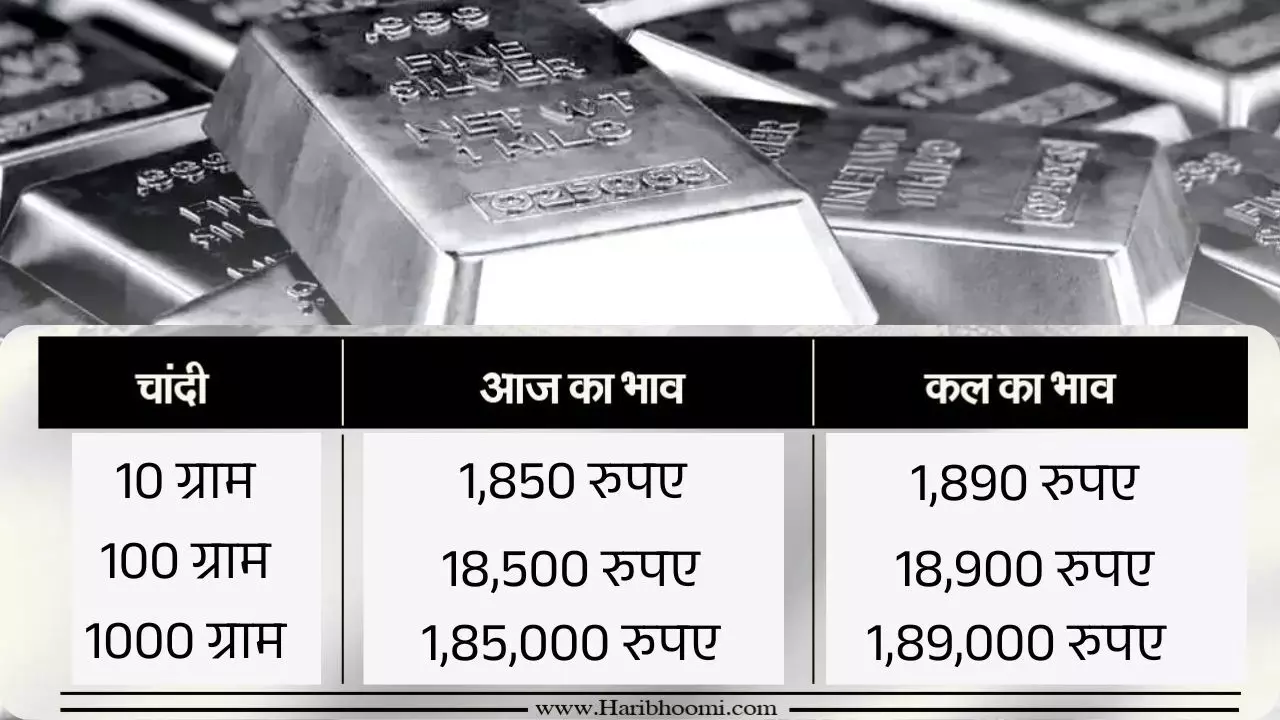 काफी समय से लगातार बढ़ोतरी के बाद आखिरकार चांदी की कीमतों में थोड़ी गिरावट देखने को मिली है। 16 अक्टूबर को चांदी की कीमतों में 1000 रुपए की गिरावट दर्ज की गई थी, जिसके बाद चांदी की कीमत 1,89,000 रुपए प्रति किलो पहुंच गई थी। वहीं 17 अक्टूबर को चांदी की कीमतों में 4000 रुपए की गिरावट दर्ज की गई, जिसके बाद चांदी की कीमत 1,85,000 रुपए प्रति किलो पहुंच गई है। चांदी की कीमतें कम होने से लोगों को थोड़ी सी राहत मिली है। हालांकि अब भी सोने-चांदी की बढ़ी हुई कीमतों के कारण, सोने चांदी की खरीदारी आम आदमी की जेब से बाहर की बात नजर आ रही है।