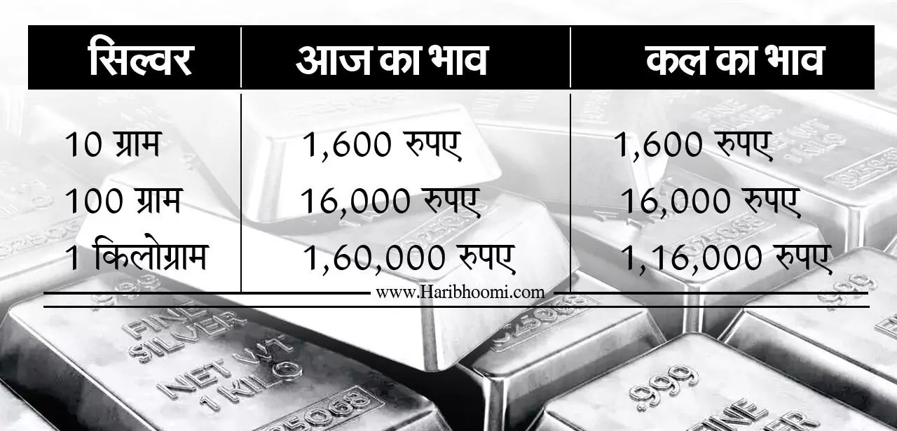 वहीं अगर चांदी की बात करें, तो चांदी का ऑलटाइम हाई 1,90,000 रुपए था, ये रेट 15 अक्टूबर को दर्ज किया गया। हालांकि 16 अक्टूबर से चांदी की कीमत में गिरावट दर्ज की गई, जो 22 अक्टूबर तक 30,000 रुपए घट गई है। बीते दिन चांदी की कीमतों में 8000 रुपए प्रति किलो के हिसाब से गिरावट दर्ज की गई, जिसके बाद चांदी की कीमत 1,64,000 रुपए पहुंच गई। वहीं आज चांदी की कीमतों में 4000 रुपए की गिरावट दर्ज की गई, जिसके बाद चांदी की कीमत 1,60,000 रुपए पहुंच गई है।