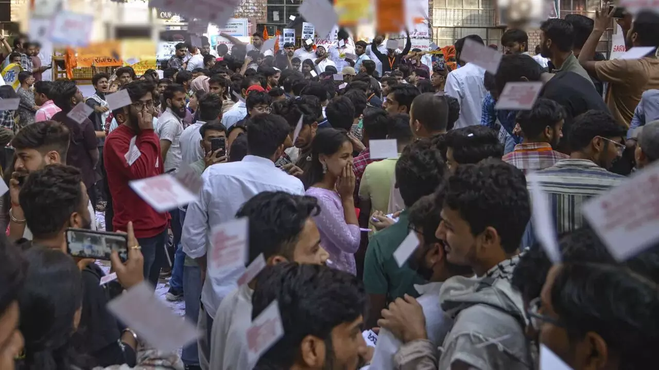 जेएनयू के चुनाव नतीजों का इंतजार करते विद्यार्थी।