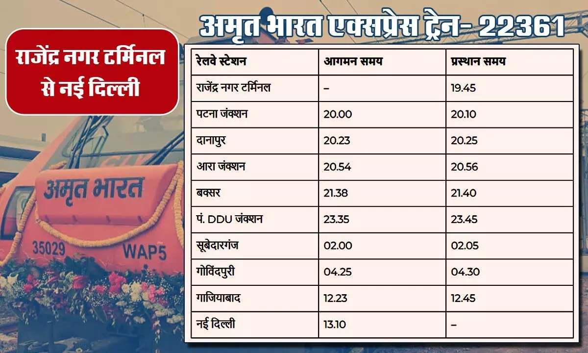 राजेंद्र नगर टर्मिनल से नई दिल्ली के लिए अमृत भारत एक्सप्रेस ट्रेन- 22361