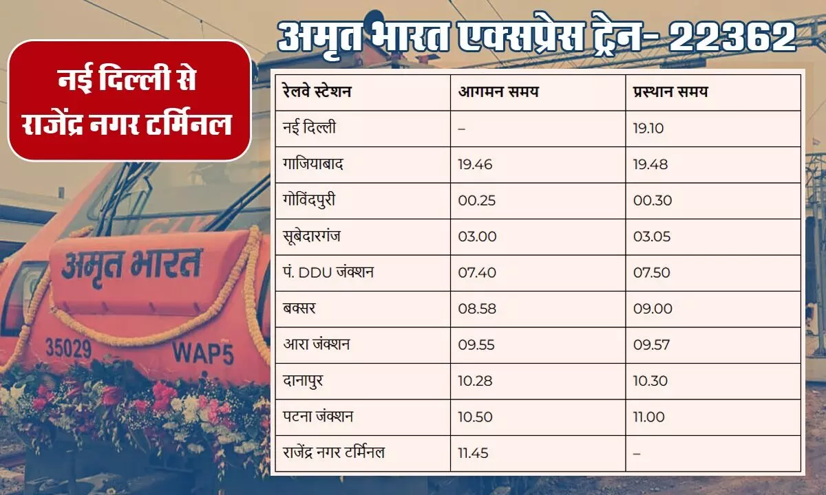 नई दिल्ली से राजेंद्र नगर टर्मिनल के लिए अमृत भारत एक्सप्रेस ट्रेन- 22362