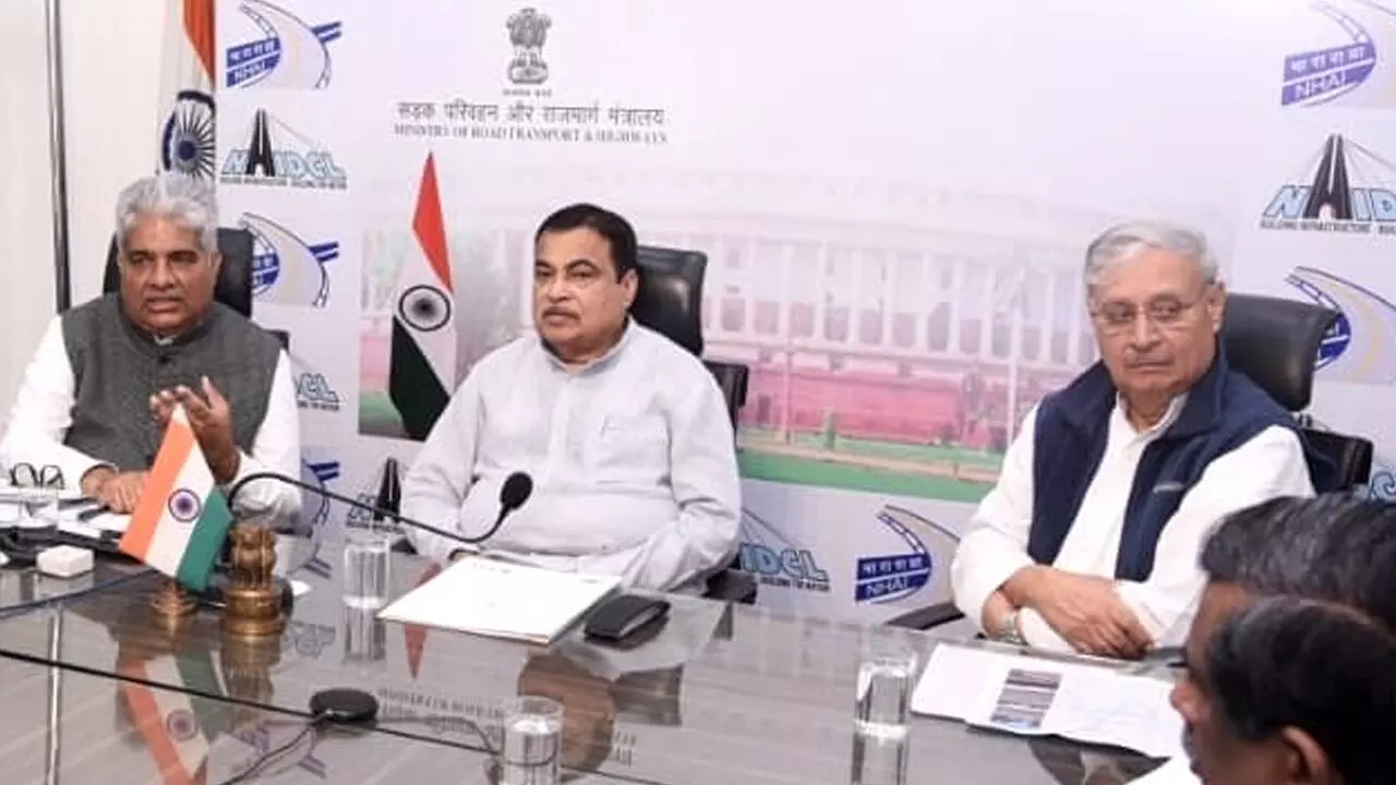केंद्रीय मंत्री नितिन गडकरी और केंद्रीय राज्य मंत्री राव इंद्रजीत की मीटिंग