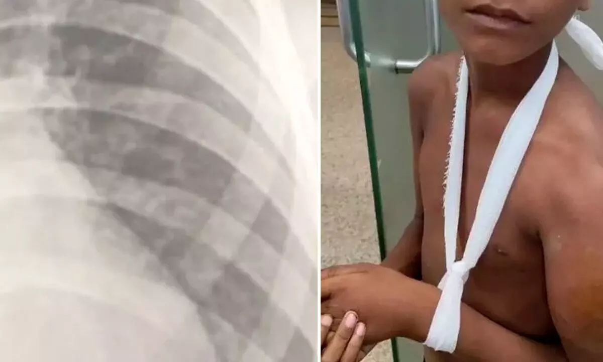टीचर ने पीटाई कर तोड़ दिया बच्चे का कंधा।