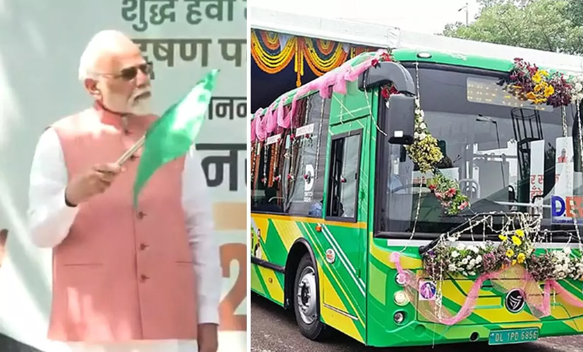 पीएम मोदी ने देवी इलेक्ट्रिक बसों को दिखाई हरी झंडी