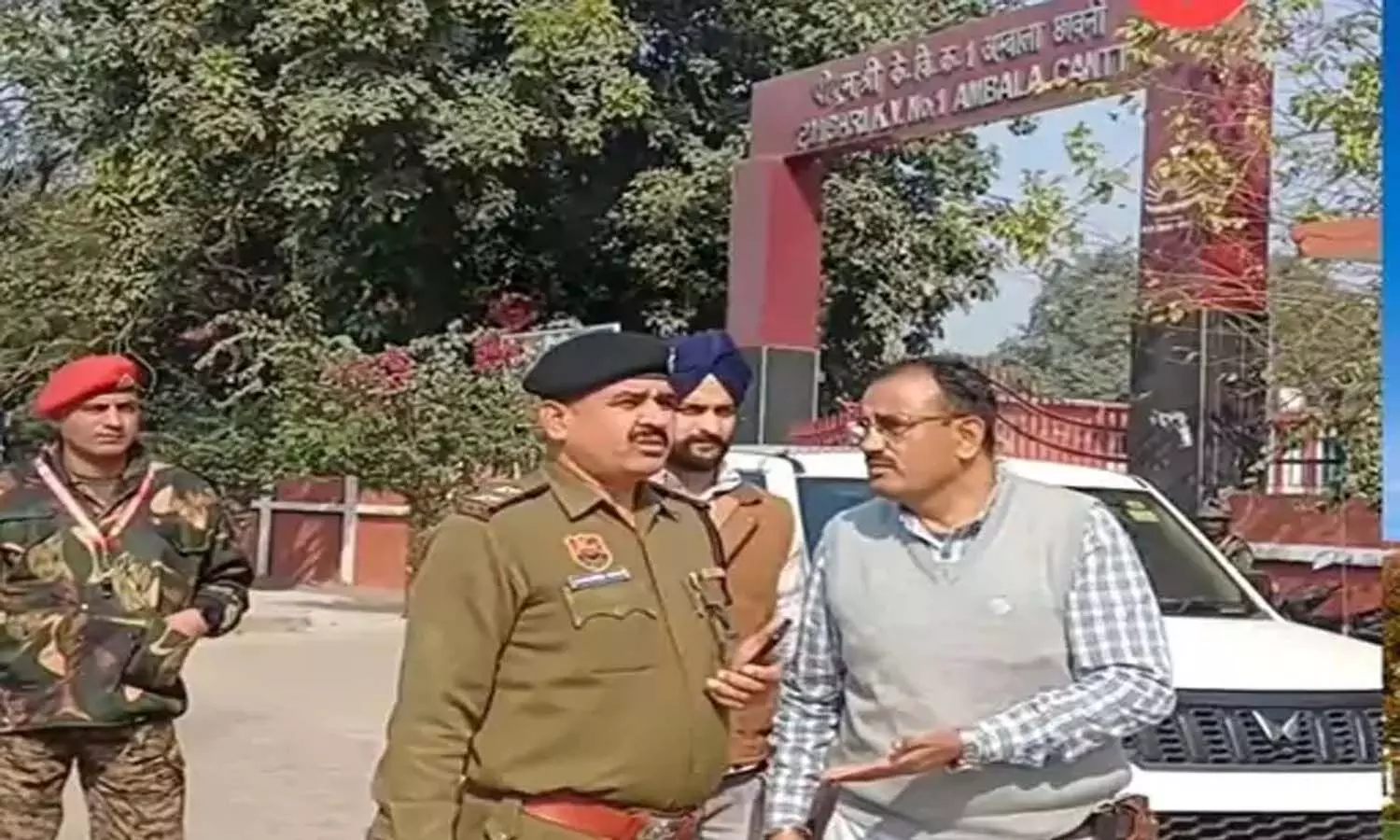 अंबाला में धमकी वाला ईमेल मिलने के बाद पहुंची पुलिस व सेना के जवान।
