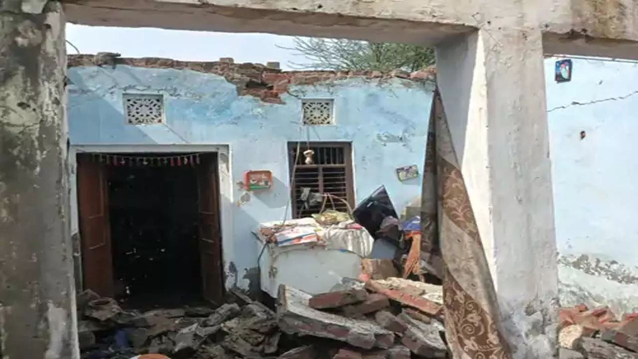 भिवानी में बारिश के दौरान गिरी मकान की छत।