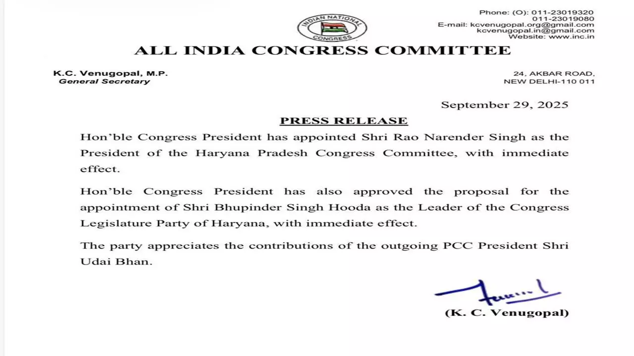 Haryana Congress president: 18 साल बाद दलित की जगह OBC राव नरेंद्र को बनाया कांग्रेस प्रदेशाध्यक्ष, हुड्डा विपक्ष के नेता