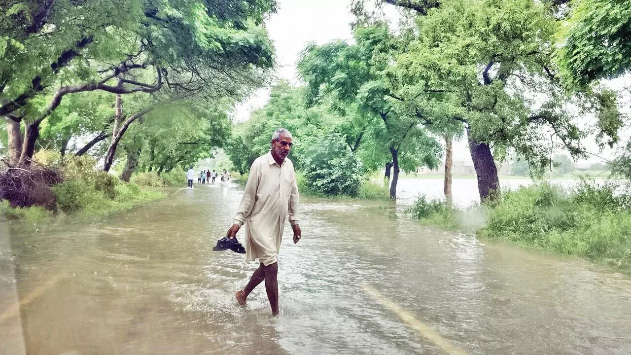 फतेहाबाद में भूना-कुलां-चंडीगढ़ मार्ग पर खड़ा पानी।