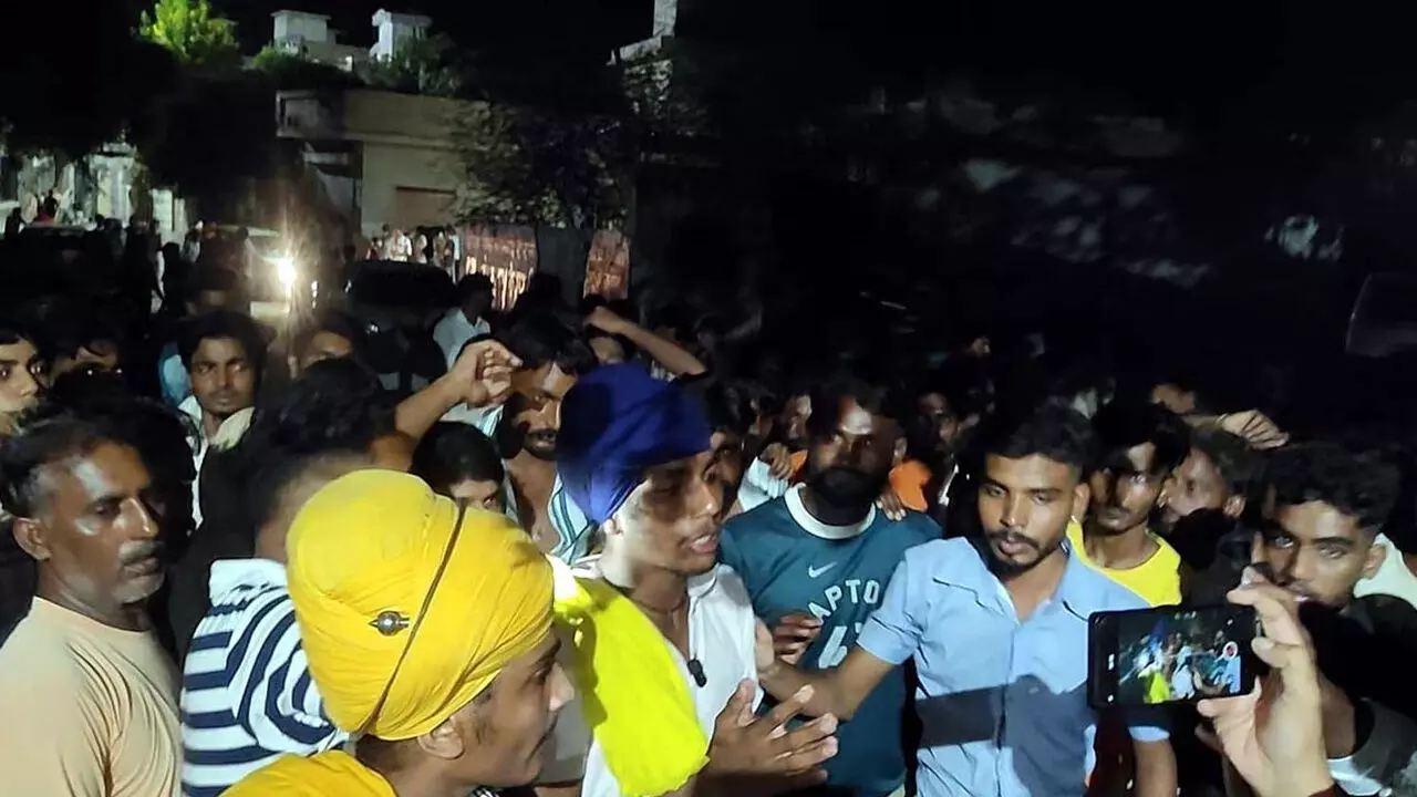 फतेहाबाद के रतिया में नंगे चोरों से परेशान लोग प्रदर्शन करते हुए।
