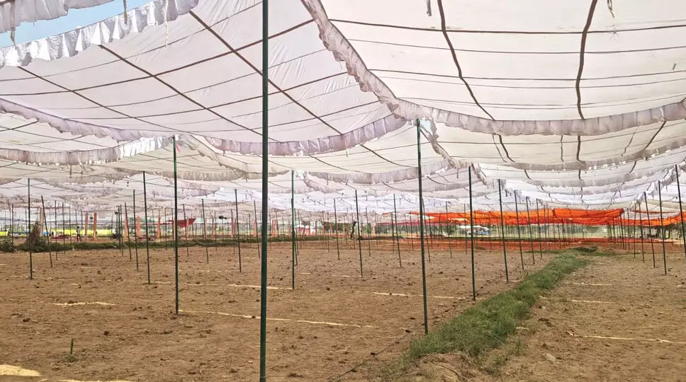 नूंह के तिरावड़ा गांव में इस्लामिक झलसे के लिए लगाया जा रहा टेंट।