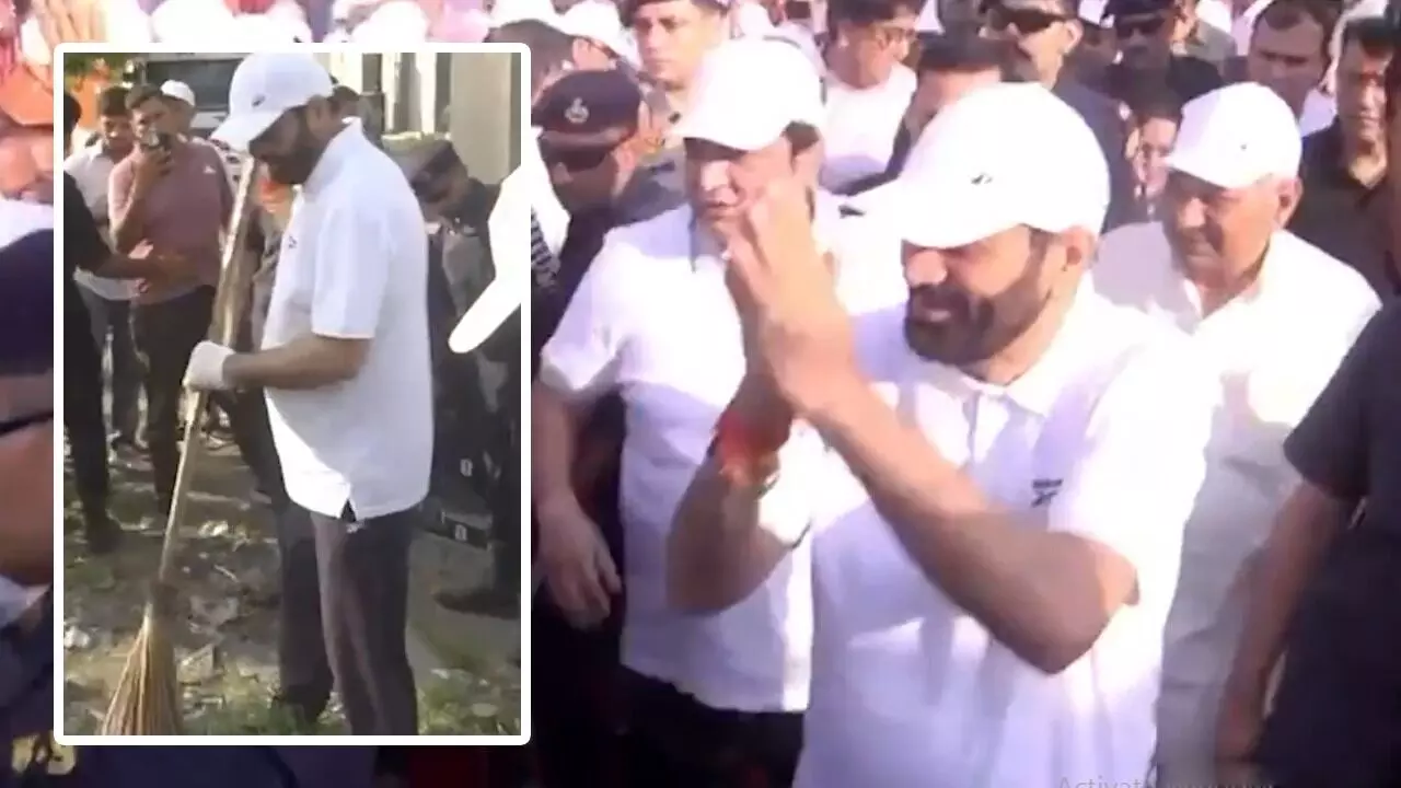 Gurugram, Haryana: Chief Minister Nayab Singh Saini participated in a mega cleanliness drive at Sohna Chowk and Sector 52 under the Haryana Urban Cleanliness Programme
