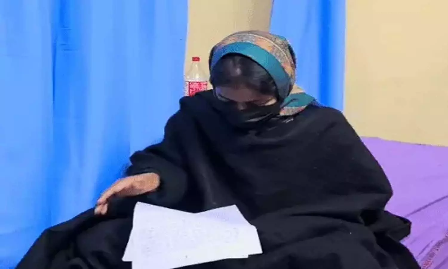 गुरुग्राम जिला अस्पताल में भर्ती लड़की अपना शिकायती पत्र दिखाते हुए।