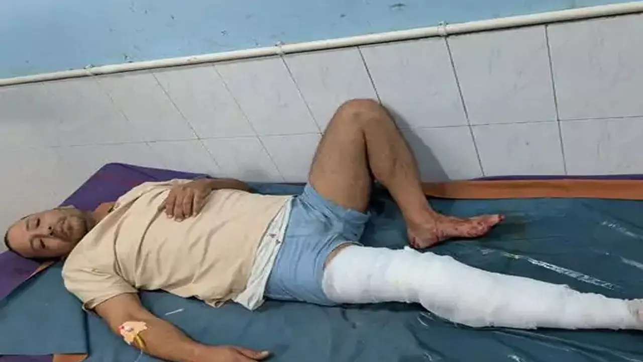 पैर में गोली लगने बाद गुरुग्राम में अस्पताल में भर्ती नेपाल का बदमाश।