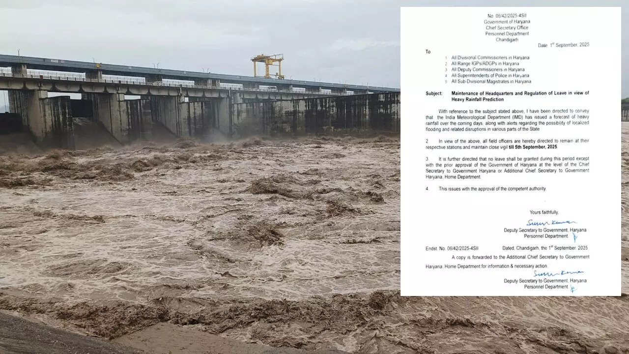 हरियाणा में बाढ़ जैसे हालात बनने पर अधिकारियों की छुट्टियां रद्द करने का आया पत्र।