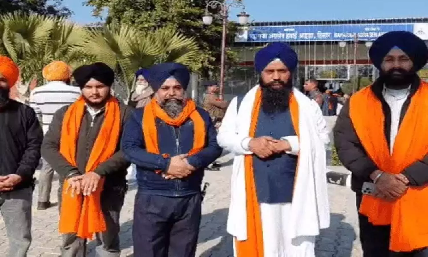 हिसार एयरपोर्ट पर पहुंचे सिख श्रद्धालु।