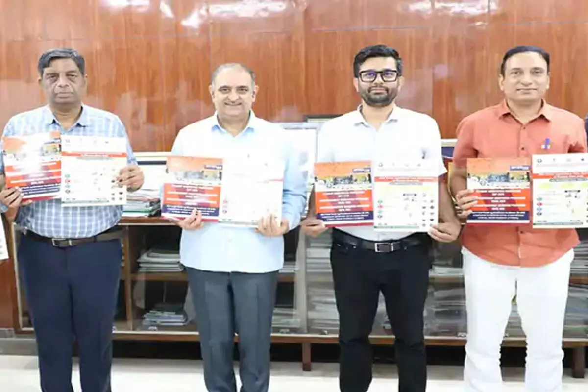 पोस्टर का विमोचन करते कुलपति बीआर काम्बोज, अनुसंधान निदेशक डॉ. राजबीर गर्ग व अन्य।