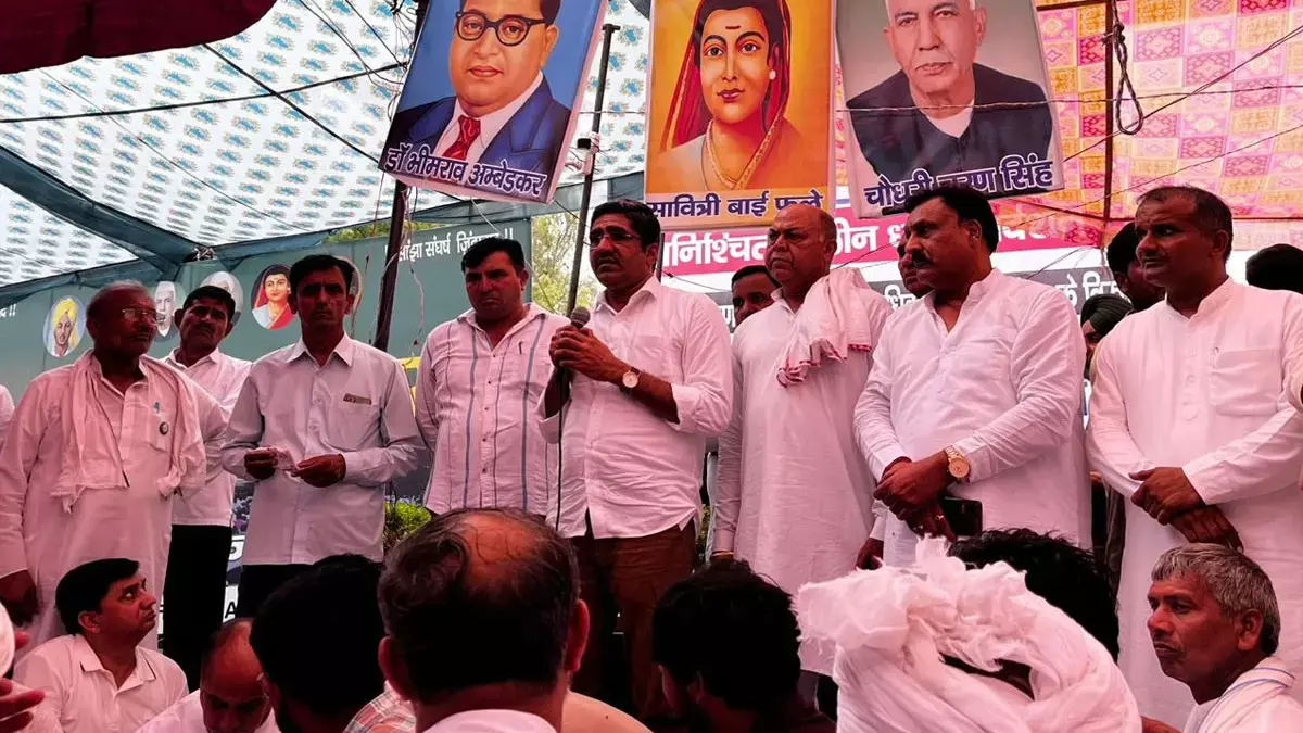 हिसार एचएयू में छात्रों के धरने को संबोधित करते अखिल भारतीय कांग्रेस के सचिव प्रफुल्ल गुडधे।