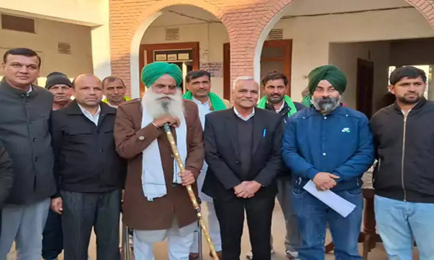 हिसार में बैठक करने के लिए पहुंचे किसान नेता जगजीत सिंह डल्लेवाल व अन्य लोग।