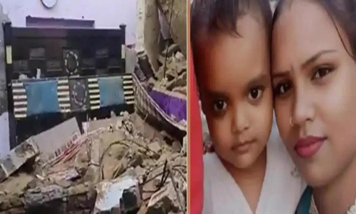 छत गिरने से मलबे में तब्दील हुआ मकान और हादसे में जान गंवाने वाली मां-बेटी।