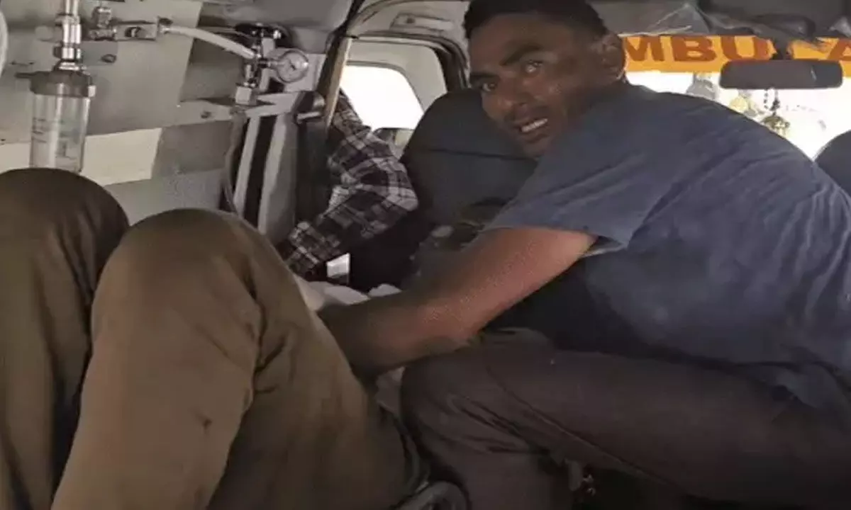 करनाल में आत्मदाह का प्रयास करने वाले युवक को अस्पताल लेकर जाते हुए।
