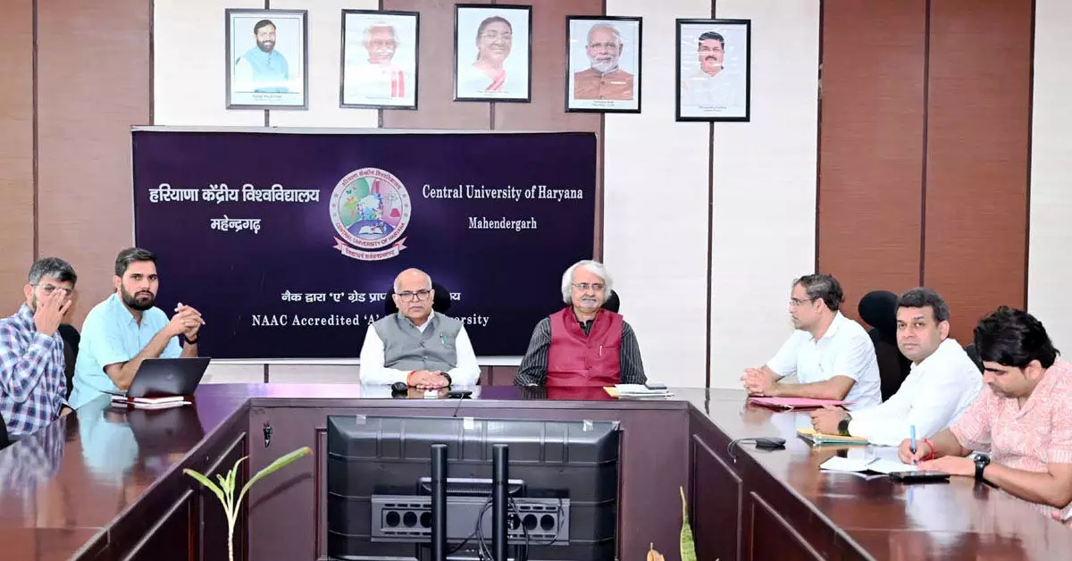 केंद्रीय विश्वविद्यालय महेंद्रगढ़ में स्नातक पाठ्यक्रमों में पंजीकरण के लिए ऑनलाइन पोर्टल की शुरुआत करते कुलपति प्रो. टंकेश्वर कुमार।