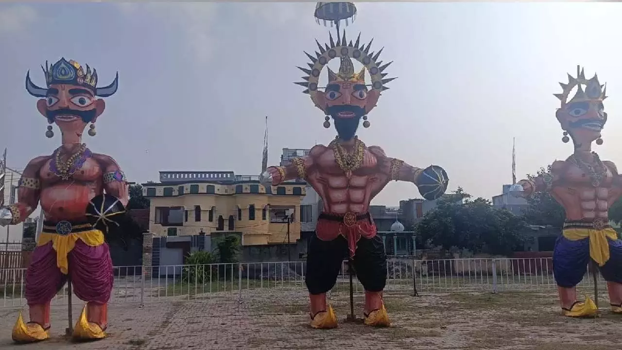 आज यानी गुरुवार को पूरे हरियाणा में विजय दशमी (Dussehra) का पर्व बड़े उत्साह के साथ मनाया जा रहा है। प्रदेशभर में 100 से भी ज़्यादा स्थानों पर बुराई के प्रतीक रावण, मेघनाद और कुंभकर्ण के विशालकाय पुतलों का दहन किया जाएगा। इस बार के दशहरे की खासियत पुतलों की ऊंचाई और उनमें इस्तेमाल की गई आधुनिक तकनीक है, जो दर्शकों के आकर्षण का केंद्र बनी हुई है।
