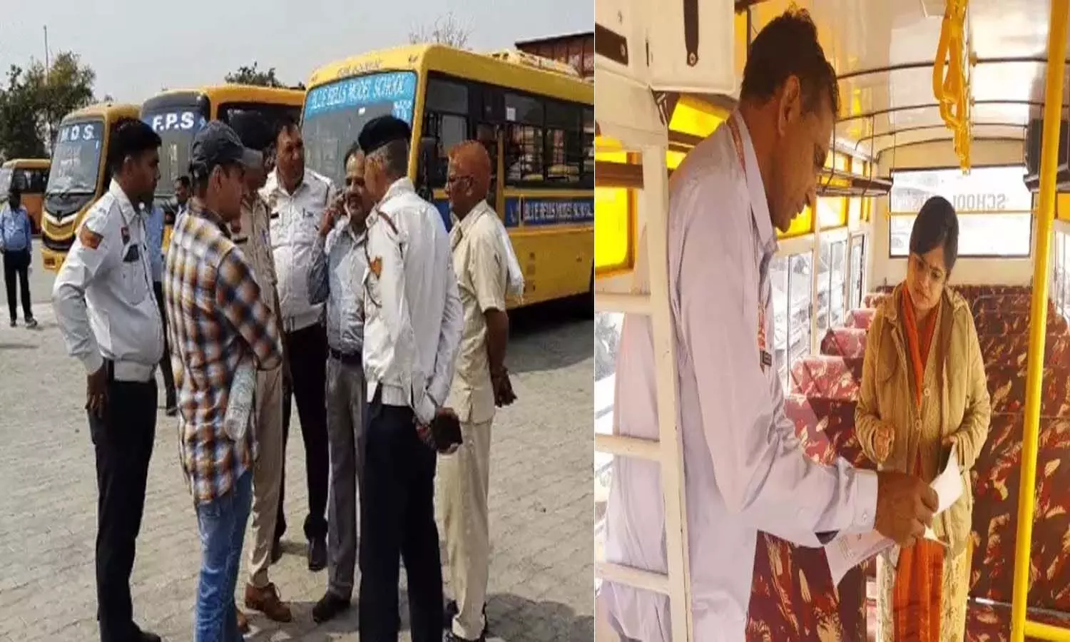 गुरुग्राम और उचाना में स्कूल बसों की चेकिंग करती पुलिस।