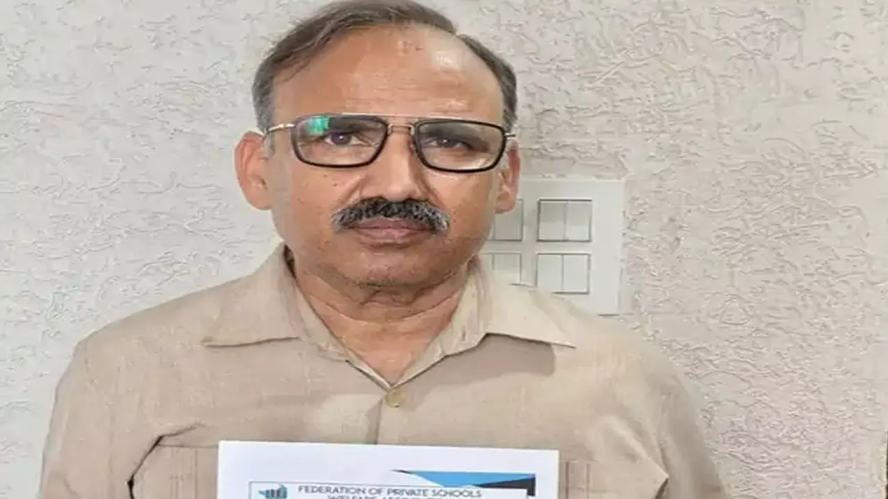 ज्ञापन के साथ फेडरेशन ऑफ प्राइवेट स्कूल्स वेलफेयर एसोसिएशन के अध्यक्ष कुलभूषण शर्मा।
