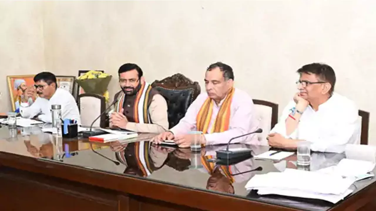 सीएम हाउस में मीटिंग में मौजूद मुख्यमंत्री नायब सिंह सैनी व अन्य।