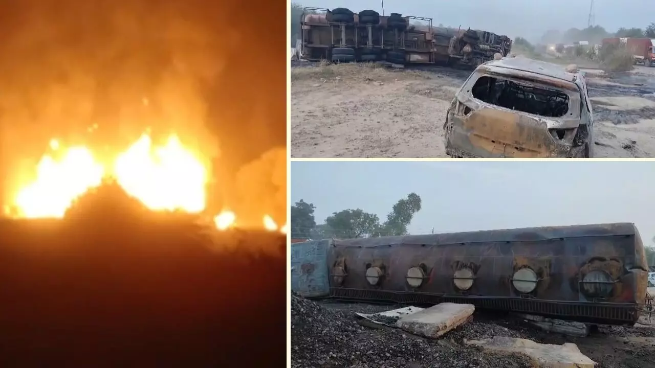 चालक ने उसे संभालने की कोशिश की, लेकिन वह पलट गया। जैसे-तैसे चालक बाहर आ गया, लेकिन टैंकर पलट जाने की वजह से उसमें रखा केमिकल बाहर आ गया, जिससे टैंकर में आग लग गई। आग की लपटें इतनी तेज थी कि टैंकर के पीछे चल रही क्रेटा कार भी उसकी चपेट में आ गई।