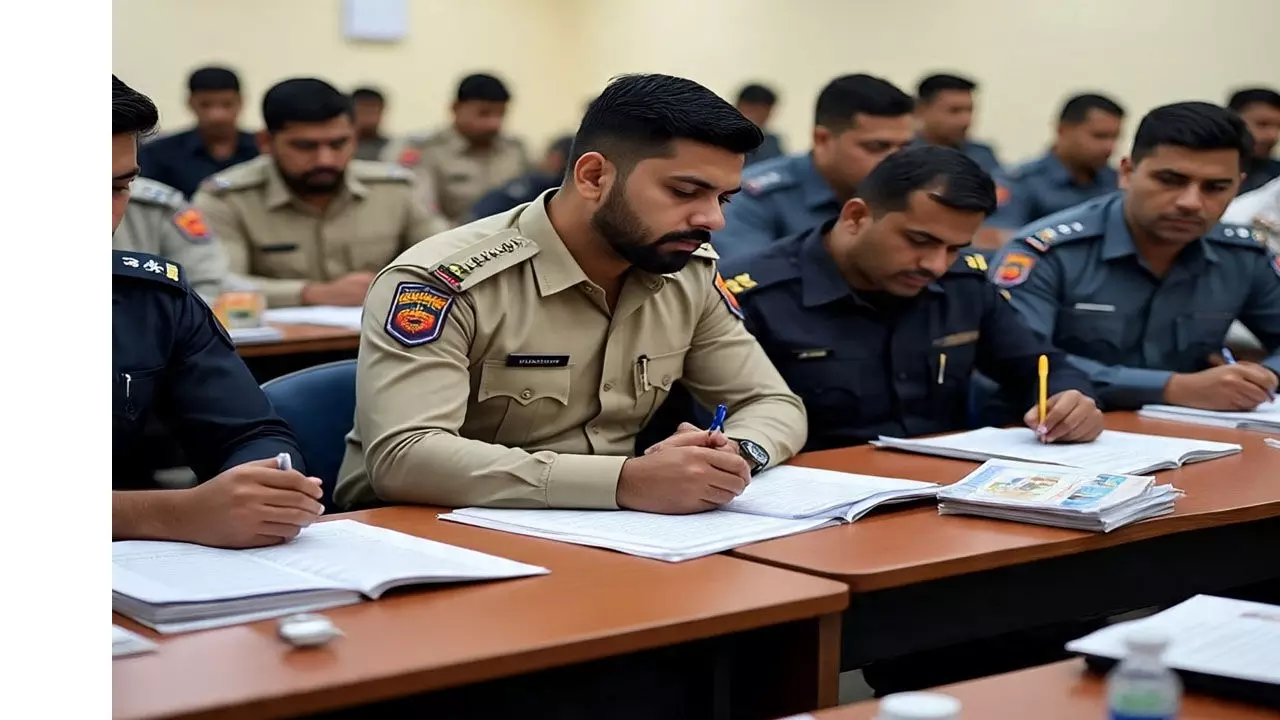 CET परीक्षा देते पुलिसकर्मी। - AI जेनरेटेड फोटो