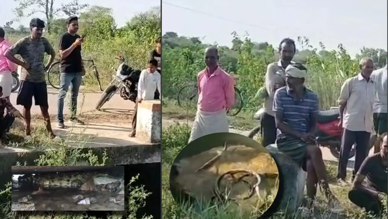 भिंड: रौन कस्बे में पहुंचा मगरमच्छ, दहशत में लोग।