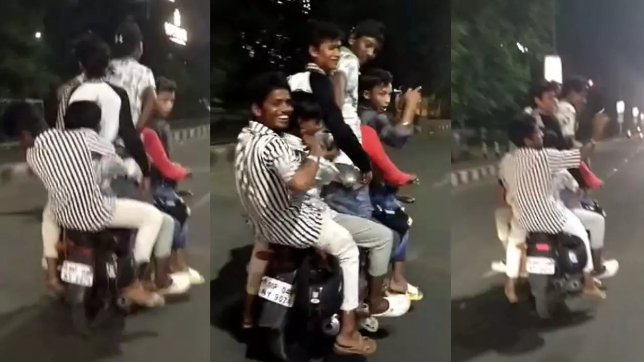 भोपाल: ट्रैफिक नियमों की धज्जियां, एक बाइक पर 6 नाबालिग, बिना हेलमेट कर रहे स्टंट