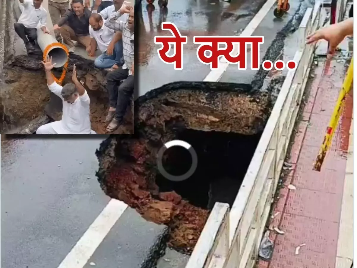 Bhopal Road Collapse Video: मध्यप्रदेश की राजधानी भोपाल के सबसे व्यस्त इलाके एमपी नगर में गुरुवार (17 जुलाई) दोपहर तेज बारिश के दौरान सड़क धंस गई। बोर्ड ऑफिस रोड पर सड़क के एक हिस्से पर करीब 8 फीट गहरा और 10 फीट चौड़ा गड्ढा बन गया। गनीमत रही कि हादसे के वक्त घटना स्थल पर कोई राहगीर मौजूद नहीं था। कांग्रेस ने इसे भ्रष्टाचार का नमूना बताया है।