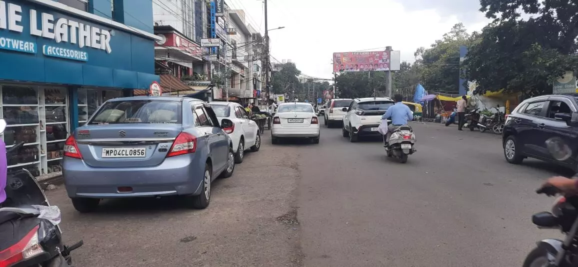 भोपाल: नवरात्र के साथ शुरु हुए त्यौहारी सीजन में न्यू मार्केट और चौक बाजार में खरीदारों की भीड़ बढ़ गई है। जिससे यहां आने वाले लोग सड़कों के किनारे वाहन पार्क कर रहे हैं, ऐसे में इन बाजारों की सड़कों की चौड़ाई घटकर आधी रह गई है। इधर दुकानदारों का कहना है कि पार्किंग की जगह नहीं होने की वजह से यह हालात बनते हैं।