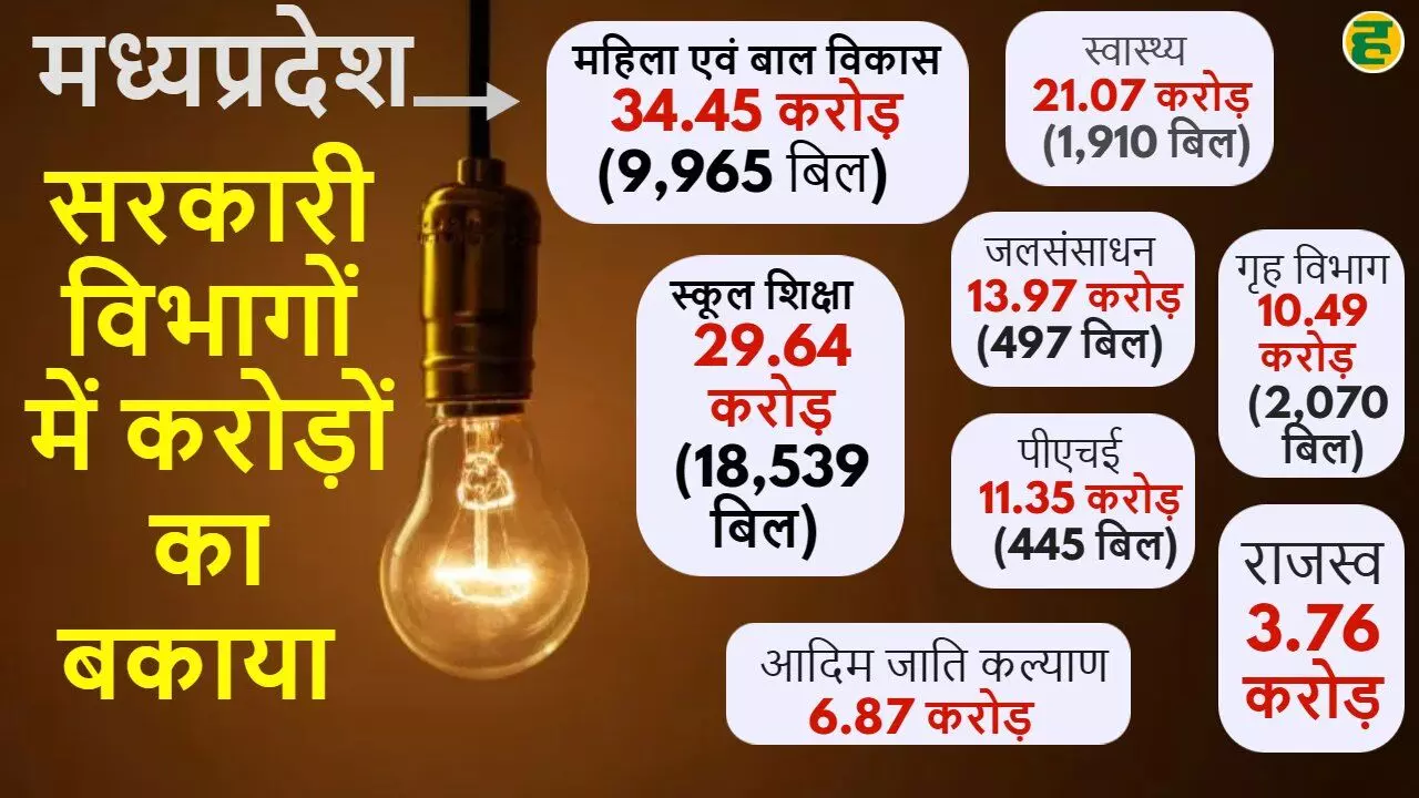 मध्यप्रदेश के सरकारी विभागों पर 406 करोड़ से ज्यादा का बिजली बिल बकाया.