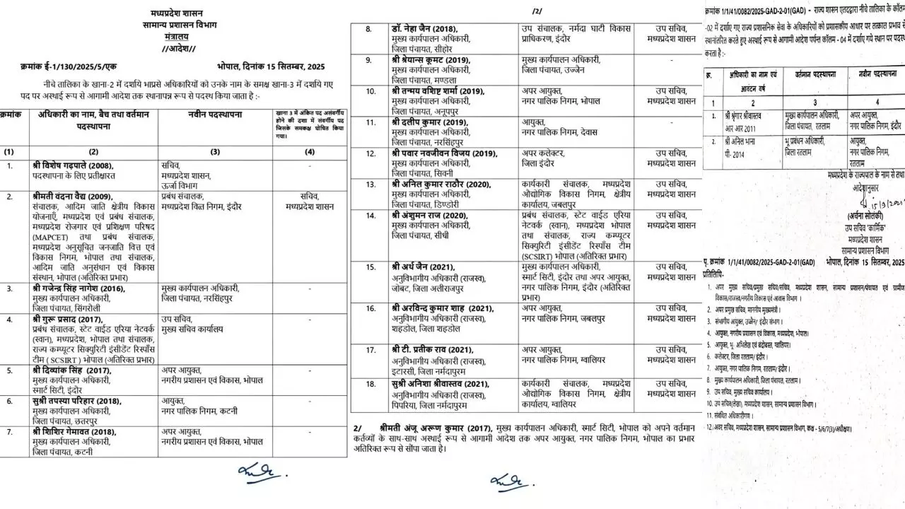 MP IAS Transfer 2025: एमपी में फिर हुआ तबादला, 20 अफसरों की नई पोस्टिंग, देखें पूरी लिस्ट
