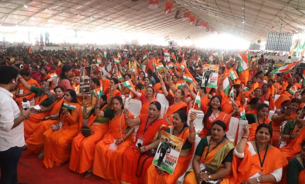 भोपाल के जंबूरी मैदान में आयोजित महिला सशक्तिकरण महासम्मेलन में में 2 लाख से अधिक महिलाएं शामिल हुईं। सिंदूरी रंग की साड़ियों में आईं 15,000 से अधिक महिलाओं ने प्रधानमंत्री का स्वागत किया। 'ऑपरेशन सिंदूर' की सफलता का प्रतीक था।